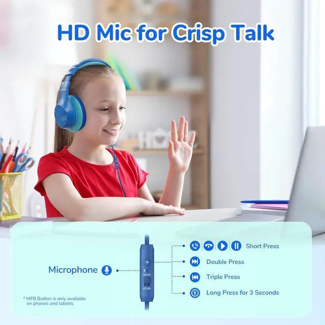 [HD Mic for Clear Call] With a built-in high-definition microphone, the kids headphones deliver crystal-clear audio during calls and online classes, making them ideal for communication and interactive learning.