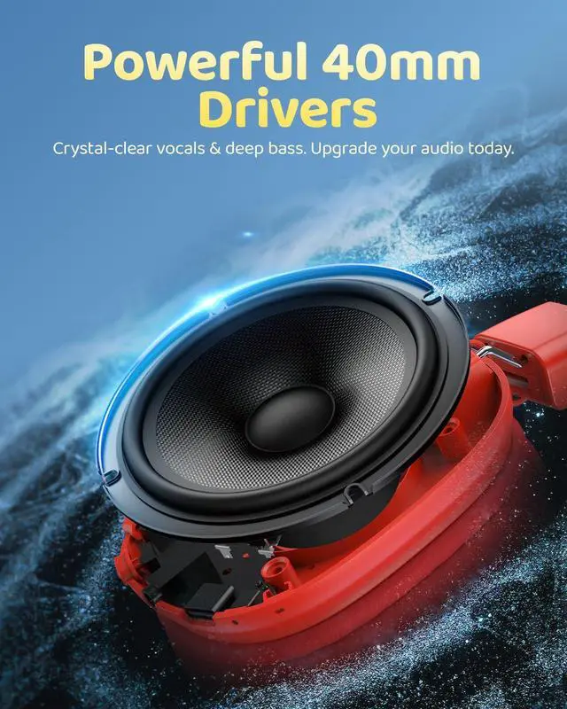 Bluetooth Headphones, Over-Ear Wireless Headphones with Microphone, Safe-Volume 85dBA, Bluetooth 5.4, Foldable Lightweight and Comfortable, 50H Playtime, USB-C Charging, Red