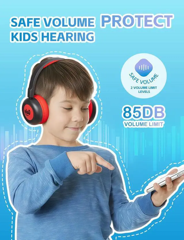 Hearing Protection: Ensure your child's hearing is protected with our kids bluetooth headphones. Built-in fixed safety volume limit level set to 85dB, these toddler headphones provide a safe and enjoyable listening experience, meeting strict safety standards for kids' ears.