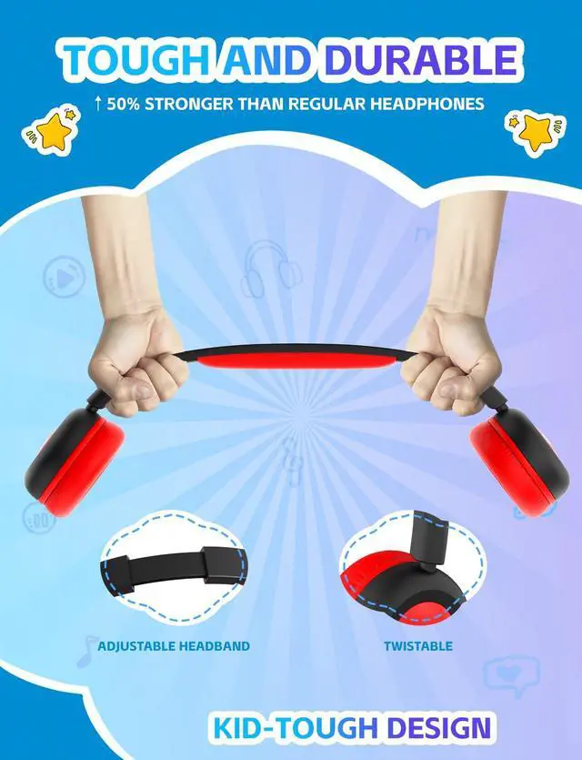 Unmatched Comfort & Durability: Weighing as light as a baseball cap, these kids Bluetooth headphones feature memory-protein cushions that won't squeeze small heads. The adjustable headband grows with children (3-12 years), while food-grade silicone parts survive daily drops and snack spills.