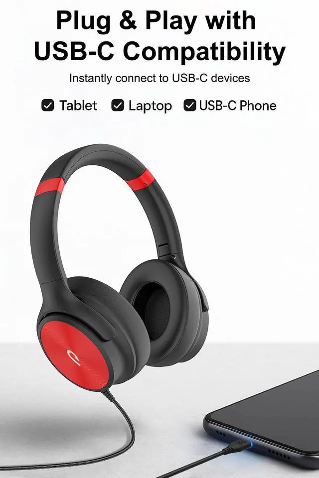 USB-C Connectivity for Modern Devices: Equipped with a USB-C connector for seamless audio transmission, compatible with the latest smartphones, tablets, and laptops.