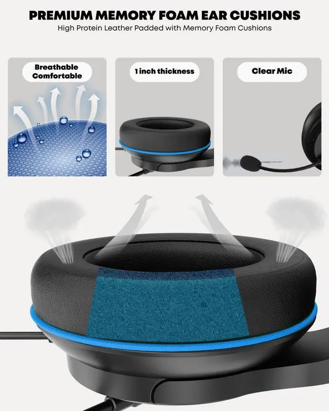 ENC Technology Noise Canceling Microphone: The headset features an omni-directional noise-canceling microphone that significantly reduces ambient noise during team communication, enhancing voice clarity. With 120° rotation support, the fixed microphone minimizes electrical noise and interference compared to detachable ones, ensuring clearer voice transmission without being affected by connection issues, thereby maintaining an uninterrupt