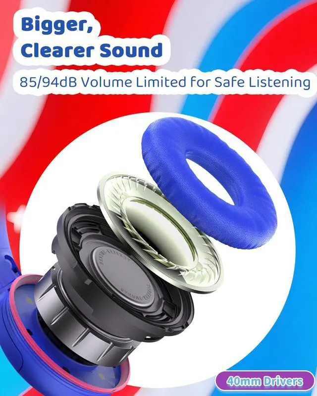 Safe Volume & Crystal-Clear Sound: Protect little ears with an 85/94dB volume limit while enjoying rich, balanced stereo sound from 40mm driversperfect for study, play, and travel.