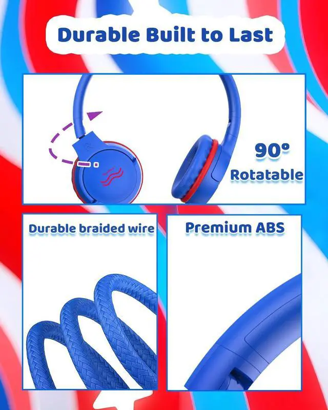 Built to Last: Featuring a tangle-free 4 ft nylon braided cord and durable hinges, these headphones withstand drops, tugs, and daily adventures with ease.