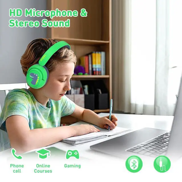 Stereo Sound & Materials - Kids need good sound too. These dinosaur design headphones feature a built-in 40mm speaker unit, which provides rich and lifelike stereo sound. With sustainable BPA-free materials that comply with Rohs2.0 and CPC standards, these headphones are kid-friendly.