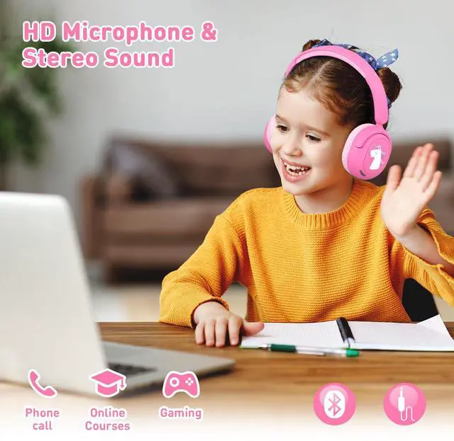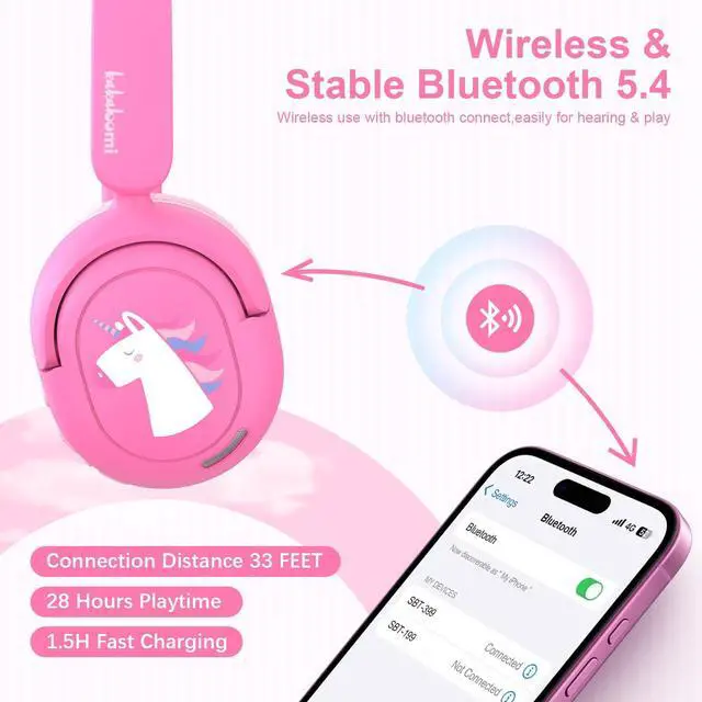 Stereo Sound & Materials- Kids need good sound too. This unicorn design kids headphones built-in 40mm speaker unit provides rich and lifelike stereo sound. With sustainable BPA-free materials that comply with Rohs2.0 and CPC standards, this kids bluetooth headphone is kid-friendly indeed.