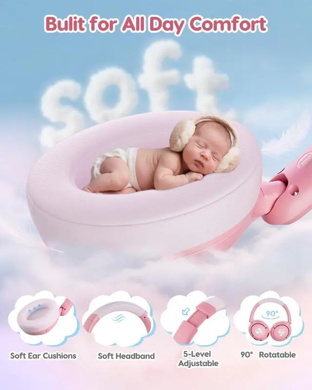 Lightweight & Comfy Fit: These toddler headphones feature soft memory foam ear cushions and a lightweight frame (only 6.35 ounces). The adjustable headband fits almost any head shape, ensuring all-day comfort for children studying or on long flights.