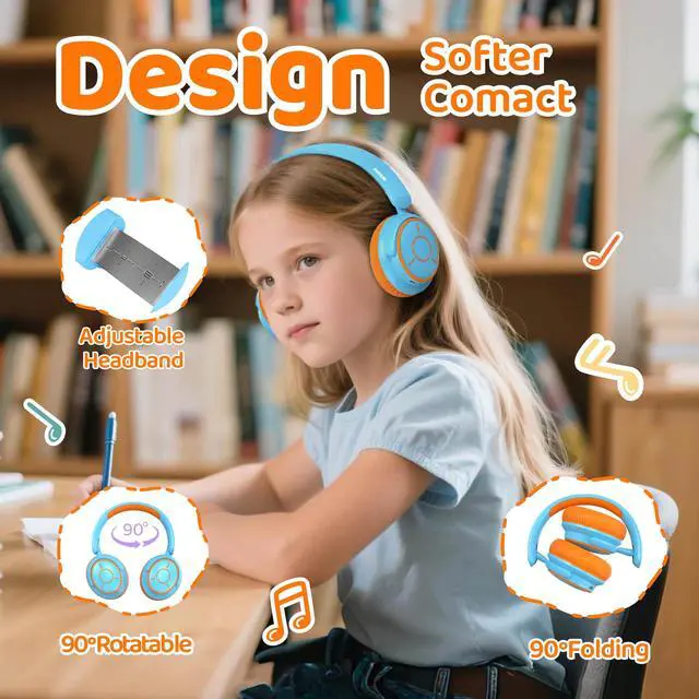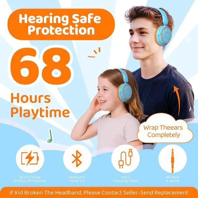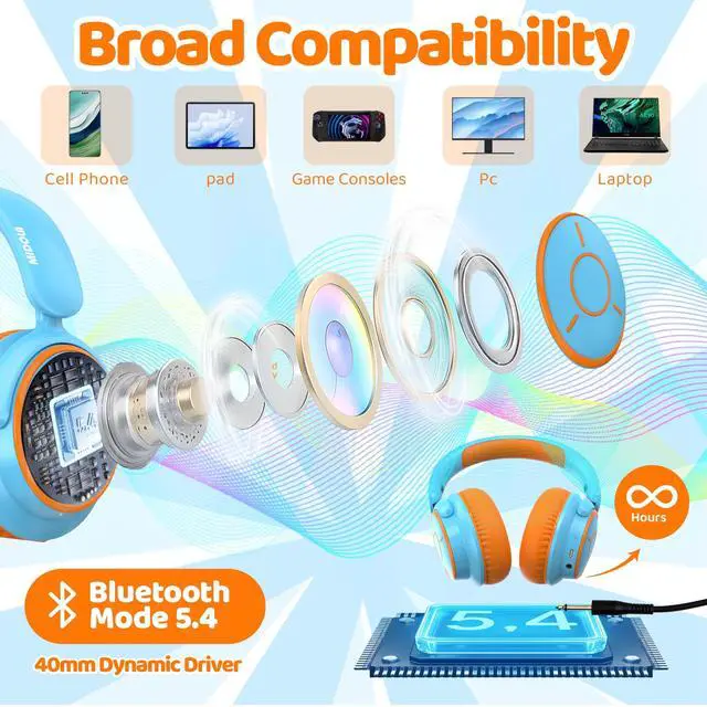 Bluetooth 5.4 HD Sound Quality - Designed for children's use scenarios, these headphones support both wireless Bluetooth and wired connections. The Bluetooth 5.4 ensures a stable connection for online classes and cartoons (uninterrupted within a 15-meter range), and the plug-in mode maintains the volume limit (exclusive patent). The 40mm high-fidelity speaker improves online class voice clarity by 50%.