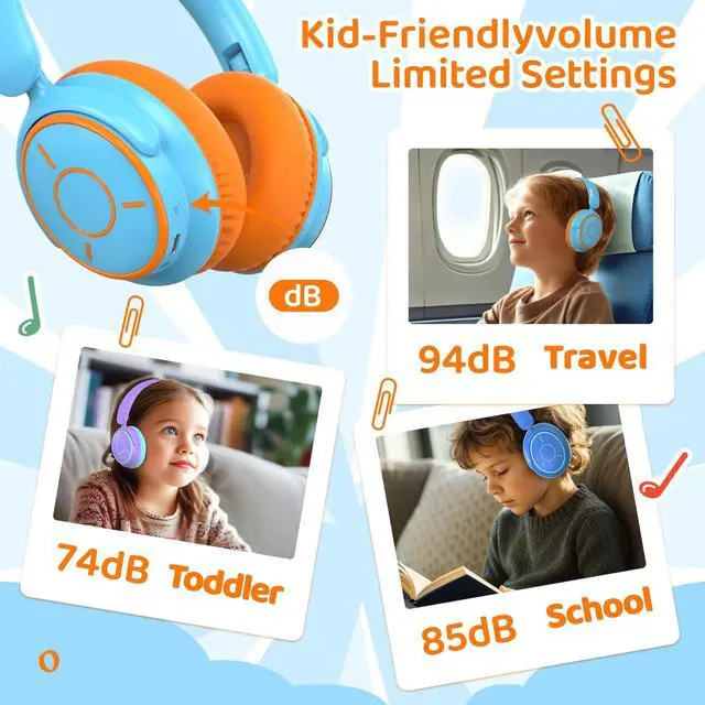 Volume Protection - These children's headphones feature a three-stage safe volume control at 74/85/94dB to ensure hearing health. The 74dB mode is suitable for ages 3-6, 85dB is ideal for school-age children, and 94dB requires parental supervision (hold for 2 seconds to switch); a combination key lock prevents accidental touches.