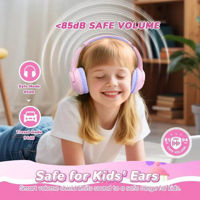 Volume Limiter for Safe ListeningProtect kids' ears with dual volume limit settingsswitch between 85dBA and 94dBA for secure and enjoyable listening experiences. These headphones are great for toddlers and kids alike, allowing them to immerse in music and stories worry-free.