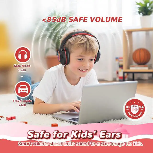 Volume Limiter for Safe ListeningProtect kids' ears with dual volume limit settingsswitch between 85dBA and 94dBA for secure and enjoyable listening experiences. These headphones are great for toddlers and kids alike, allowing them to immerse in music and stories worry-free.