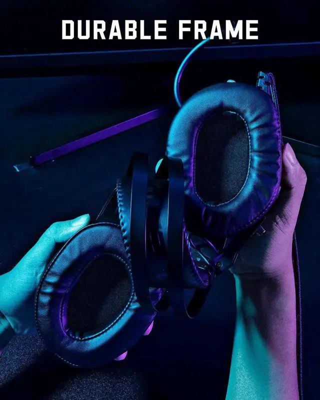 The ideal gaming headset must be comfortable to wear for long periods of time. Lightweight frame, double reduce pressure headband with soft protein leather ear cups, so much more comfortable than other gaming headphones, the smaller burden keeps long time gaming.