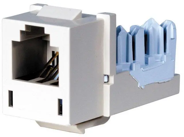 Xcelerator Jacks—Universal Wired 110 Connection• Universal wiring for T568A or T568B For use with Hubbell wall plates Third-party component verifiedFast and easy to install and terminate. Compact, full-encasement housing protects connection elements and snaps into standard Hubbell keystone opening. Termination towers are angled for easy lacing of wires into IDC contacts. Paired punchdowns have color-coded wiring labels. UL Listed and CSA Certified. Jack, Office White, Voice