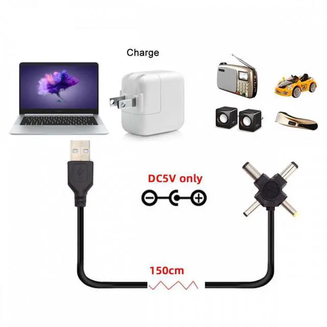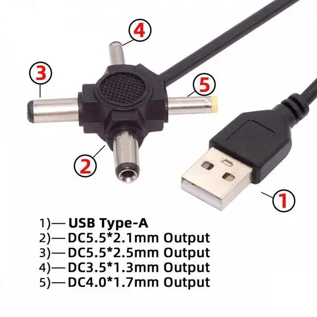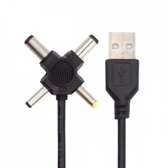 USB 2.0 Type-A Male to 4-in-1 DC 5V 5.5x2.5mm 5.5x2.1mm 4.0x1.7mm 3.5x1.3mm Power Plug Barrel Connector Charge Cable