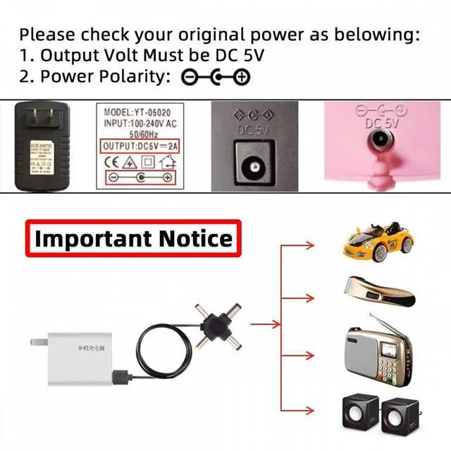 Output: DC 5V 5.5x2.5mm 5.5x2.1mm 4.0x1.7mm 3.5x1.3mm