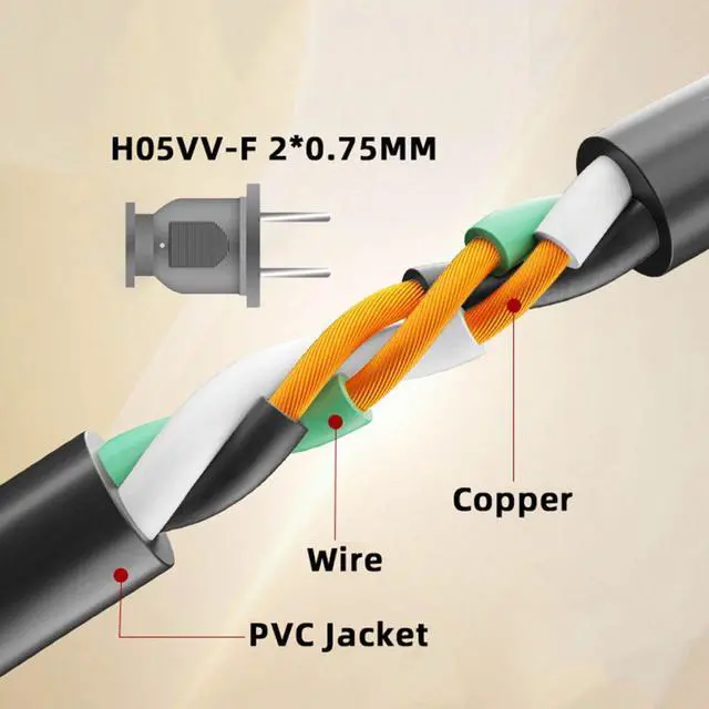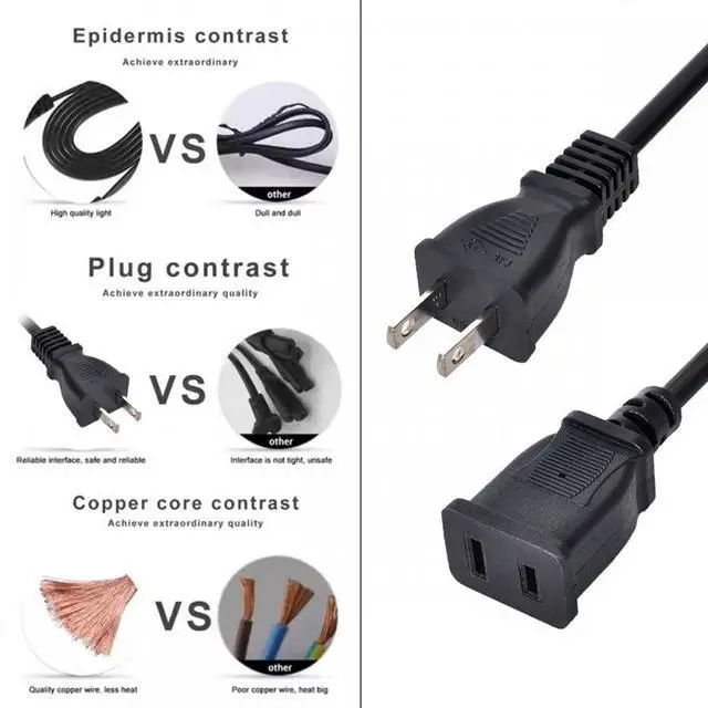 The Copper conductor for safty and durability,Extend powered devices away from wall outlets,Durable, heavy-duty construction short USA AC 2-pin power extension cable.