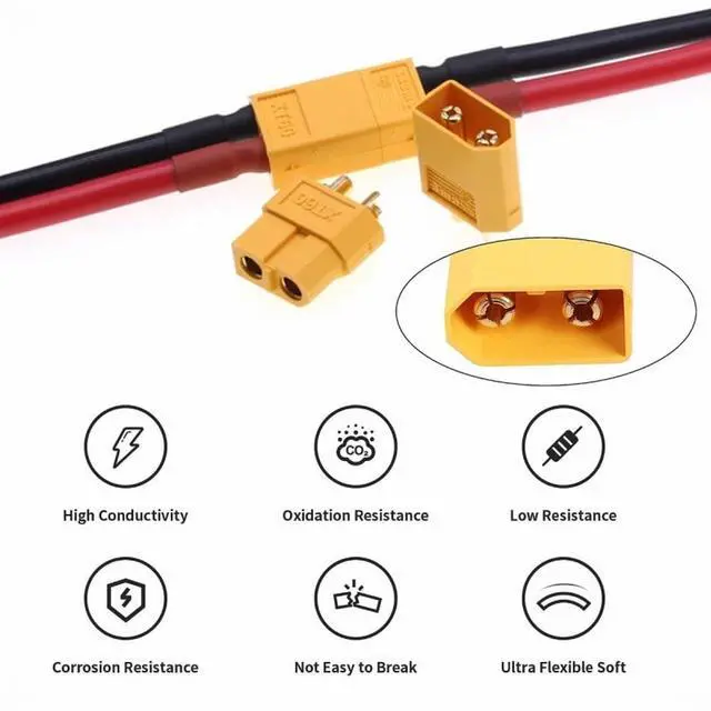 XT60 Extension Cable easily compatible for connecting and disconnecting of most battery packs are applied in portable power station, remote control toy cars, UAV,RC battery.