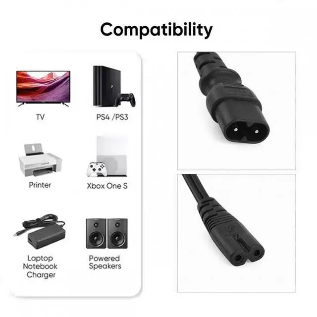 Cord IEC60320 C8 Plug to C7 Receptacle Male to Female Extension Supply Main Adapter Cable 30cm.