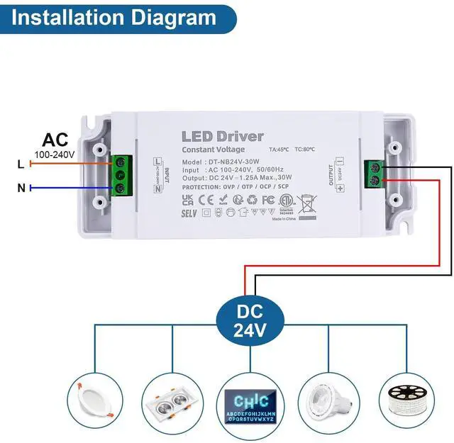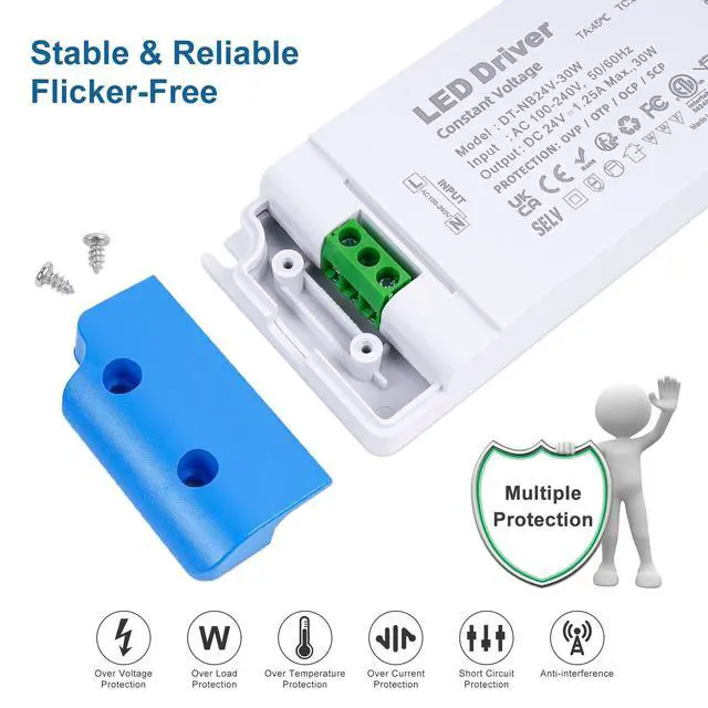 - The switching power supply has built-in thermal overload and short circuit protection. LED driver is very safety.