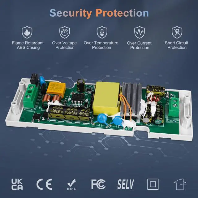 - Easy to install and wire up.No humming, light flicker or switch on delay from the transformer. Low power design, static power consumption, low calorific value.