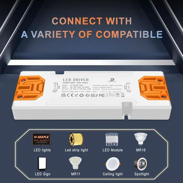 LIFE UPGRADE-Upgrade your lighting system, replace your old halogen bulbs with the constant voltage LED driver and save on energy costs, which is an ideal choice for various lighting applications, including LED spotlights, strips, and lamps.