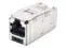 Category 6, RJ45, 8-position, 8-wire universal shielded black module with integral shield.