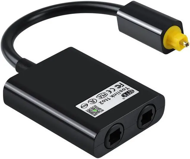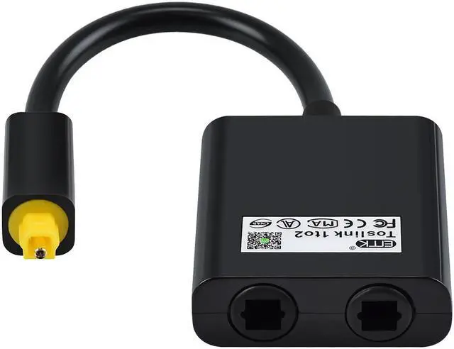 nullFeatures: 1. ThisEMKTOSlink1x2OpticalAudioSplitterallowsyoutoconnectonetoslinkopticaldigitalaudiosourceandsplitintotwodifferentreceivingdevicessuchasaA/Vreceiverandatelevision. 2. Thisadapterisdesignedtosplitasinglesignalintotwo. IdealforconnectingyourCDplayer, DVDplayer, orotherdigitalaudiosourcetobothofyourreceiverandrecorder. Features24kGoldConnectors. 3. Thesecablesuse 0.5 mmlow-losscore, low-jittersyntheticfiberandheavymetalconnectorstodampenvibration, givingyoutheultimatelisteningexperience. 4. DigitalopticalOnedividesintotwoSplitterforCD/DVDPS3X-Box360Computer.