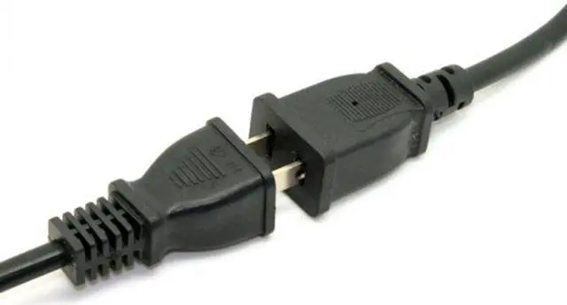 The female connector plugs directly into the device power cable while the male connector plugs into a standard outlet.