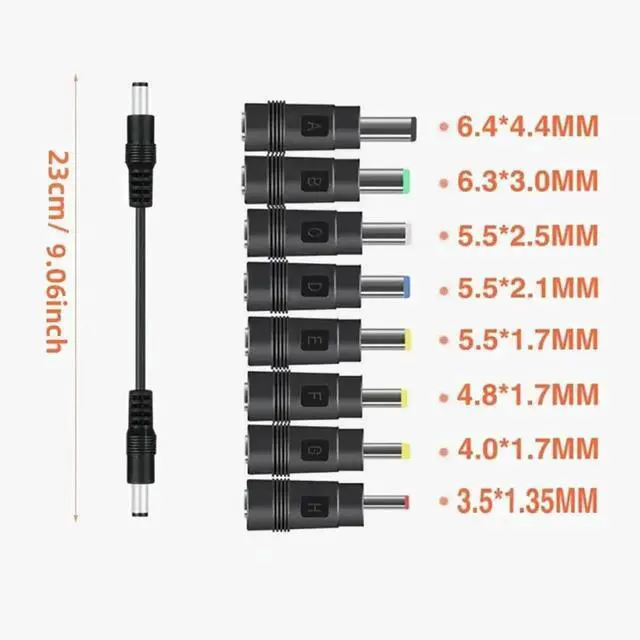 8 in 1 DC 5.5 x 2.1 mm Power Cable with DC Plugs Jack 3.5 mm 4.0 mm 4.8 mm 6.4 mm 6.3 mm Adapter Connectors Laptop Charger For Router