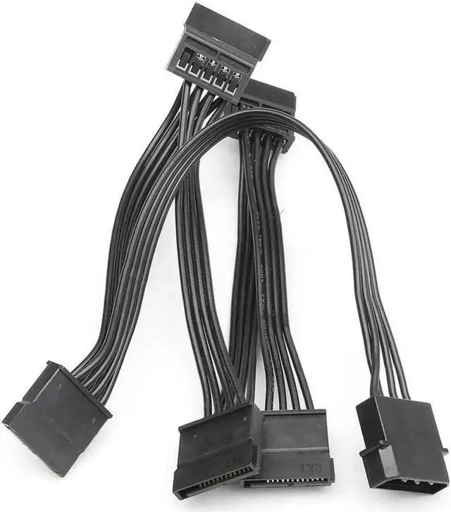 4 Pin Molex Male to 5 x 15 Pin SATA Female Power Cable Adapter For Multiple HDD