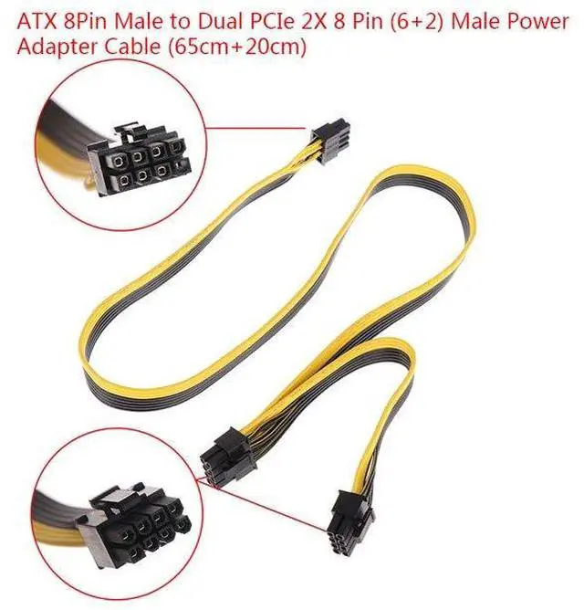 PCIe 8Pin Male to Dual PCIe 2X 8 Pin (6+2) Male PCI Express Power Adapter Cable for EVGA Power Supply 25"+9" Compatible with 6-pin & 8-pin ASUS, ASRock, Gigabyte, Radeon, Sapphire, NVIDIA Tesla GPU etc Feature: PCIe 8P - Dual 8P(6+2):PCIe 8 pin male end to plug into the power supply(Please make sure that the 8 pin port on your power supply is pcie 8 pin port , not cpu 8 pin port when to buy it.) and two 8 pin(6+2) male ends to plug into the video graphics card.(NOTE: the 8 pin end and two 8 pin(6+2) male ends cannot be used interchangeably); Compatibility: ONLY Compatible with Silverstone, EVGA 750GQ/850GQ/1000GQ 1600T2/1000T2/850T2/750T2 1600P2/1200P2/1000P2/850P2/750P2/650P2 1600G2/1300G2/1000G2/850G2/750G2/650G2/550G2 1000G3/850G3/750G3/650G3/550G3 NEX650G/750G 650GS/550GS(Doesn't work with 1000PS/850GS/1050GS), some types of Thermaltake & COUGAR PSU with 8 pin PCIe port. NOTE!!! NOT compatible with Thermaltake smart series, Seasonic, Sentey, and Corsair PSUs. Parameter: Length(including connectors): 62cm+21cm Gauge: 18AWG(standard tin-coating copper wire) Modular Power Supply Cable