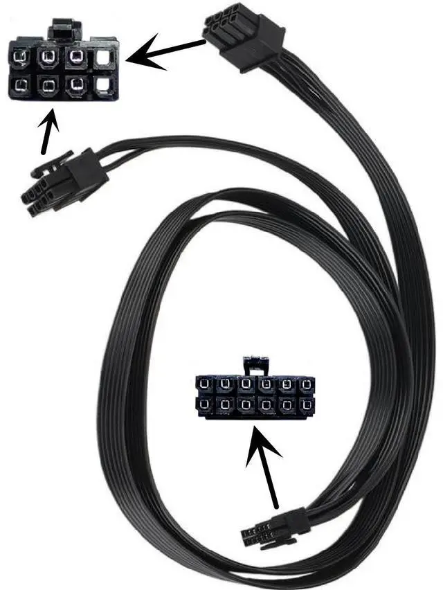 Note!!! This cable was only designed for graphics card with mini 12-pin port, not motherboards or CPUs. It will be damaged and burned once you connect it to the motherboard or CPU. NEW Premium Custom Tailor-Made PSU PCIE Power Modular Cable for NVIDIA Ampere GeForce RTX 30 Series GPU EVGA Seasonic Modular PSUs with Mini 12 Pin Connector Parameter: Length(including connectors): 12-inch(30cm) Connectors: 2x PCIe 8 pin male, 1x mini 12 pin male Gauge: 1007-18AWG(standard tin-coating copper wire) Quantity: 1pcs (only designed for graphics vedio cards, it will not work with motherboards). Cable Type: Modular Cable (for plugging into PSU and GPU directly) Connector: Triple Modular 8 Pin from PSU to GPU New RTX Mini 12 Pin Compatibility: Compatible with graphics cards with mini 12 pin port such as: NVIDIA GeForce RTX 30 Series 3090/3080/3070/3060/3050 etc; Compatible with EVGA GQ/T2/P2/G2/G3/NEX-G/NEX-B/B1/B2/B3/BQ/GS Series (!!!Doesn't work with 1000PS/850GS/1050GS) Seasonic (X-1050XM2/X-1250XM2)(SS-660/760/860XP2 series)(X-Series - X-650 KM3/X-750 KM3/X-850 KM3)(SS-1050/1200XP3) (Seasonic_Snow_Silent 750W/1050W)(M12II Evo series 520/620/650/750/850) (Seasonic FOCUS+ series)(SSR-450RM(G-450)/550RM(G-550)/650RM(G-650) semi modular), SSR-1000PD/SSR-1200PD, SSR-600TL; Package Including: Dual PCIe 8 Pin Male to Mini 12 Pin Male power cable*1pcs; Note!!! 1.Please check the specifications of your graphics card and PSU for power requirements when to use this cable. 2.Do not connect this cable on the power-on status, it will damage your components; 3. This cable was only designed for graphics video cards, it does not work with motherboards;