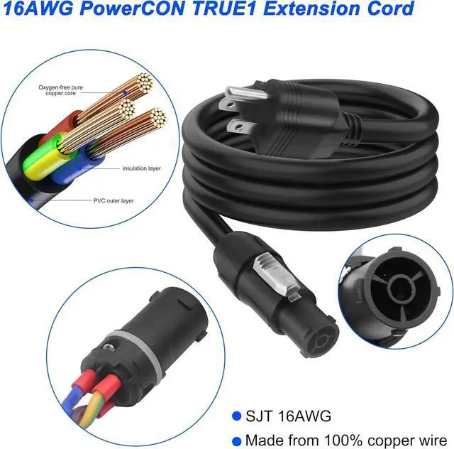 This NEMA 5-15P to ProwerCon True1 power extension cable is specifically designed to address the incompatibility between Powercon True1 and NEMA 5-15P interfaces. It facilitates seamless connectivity for a variety of audio and lighting equipment including speakers amplifiers and stage lights. The NEMA 5-15P Male to ProwerCon True1 female plug cable is made of high quality PVC material which is stable against tensile current soft and not easy to break. The inner core adopts pure copper wire core stable current and higher load. The joint is made of high-performance engineering plastics which can adapt to various harsh environments and ensure stable current.