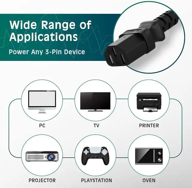 Why Choose Us: Features a fully molded design offering exceptional durability----the robust and wear-resistant material provides excellent flexibility and resists aging over time----It also remains cool during extended use----With length options ranging from 1.5 ft to 50ft our power cord caters to your diverse needs.