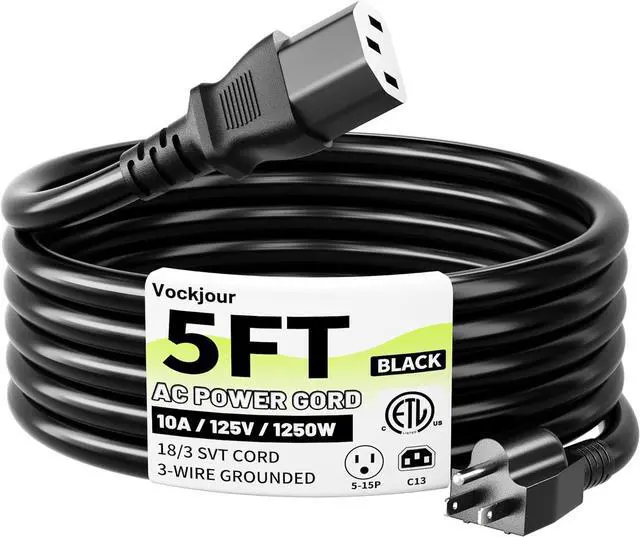 : 5 ft 3 prong Replacement AC Power Cord Cable NEMA 5-15P to C13 18AWG 10A 125V ETL listed