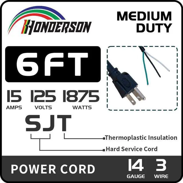High Power Rating: 14 Gauge 3 Wires SJTW 15 Amp 125V 1875 Wattsthis cord is up to the challenge providing reliable power for all your heavy-duty needs.