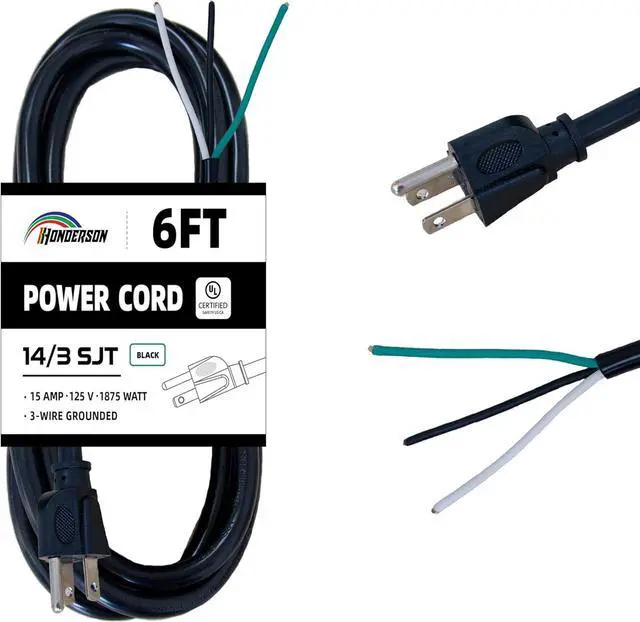 Convenient Length: At 6 feet this 14/3 power cord gives you flexibility where you need it. Plus it features a NEMA 5-15 plug and bare end for easy connections.