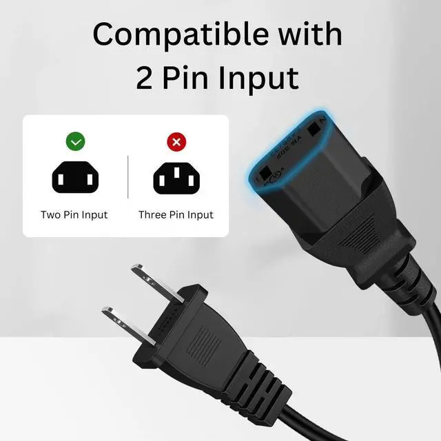 Build: for Xbox 360 power cord 2 prong with thick and heavy ensuring durability and resilience against wear and tear. It is ideal for regular use as a 2 pin power cord back up and for travel purposesExtended