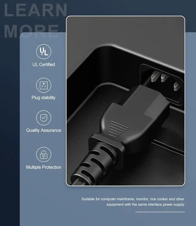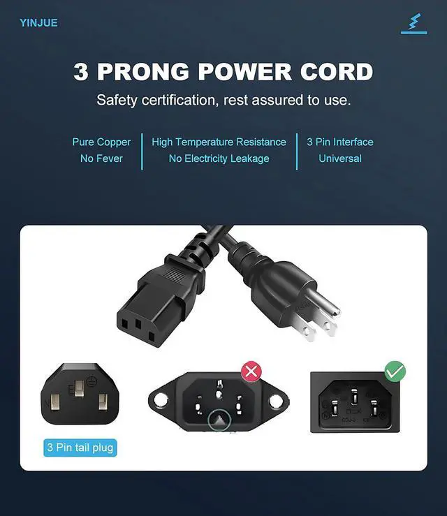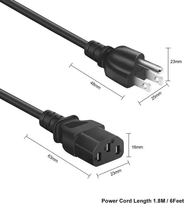 Models]: High quality pure copper 3 prong AC power cord work most models of desktop computer HDTV monitor s printers Speakers projector laser printer and more Replacement PC power supply cable cord; Compatible With VIZIO LG Monitors ( Please check whether the connection port of your device matches and confirm the length of purchase Or go to the bottom to check the matching model) [Product Type] Standard 6 feet gold length not too long and not too short meets the needs of most devices without losing its beauty. Standard 3-slot design easy to plug and unplug made of high quality materials rugged lines not easy to break wear-resistant and durable safe to use[Functional