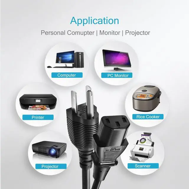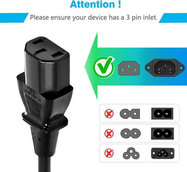 Cord: for 10a125v 3pin Three Prong US IEC 320 C13 5 15P for Hewlett Packard Imac PC Xbox Power Supply Adapter AC Cables ION Block Rocker Block Party Speaker Amplifier System Epson Printer Vizio 18awg 10 feet Long cords 120V Dynex Haier L39B2180 LE39F2280 L42B1180 L42C1180 L42H08B TV Proform Precor Reebok Sharp KDL series va19l F552XVT VL320M VL370M VL420M VL470M VO320E XVT373SV