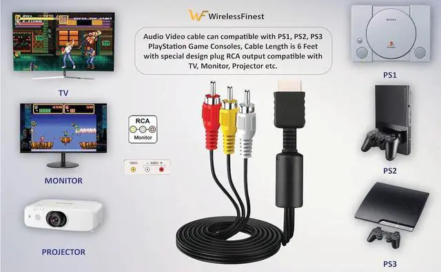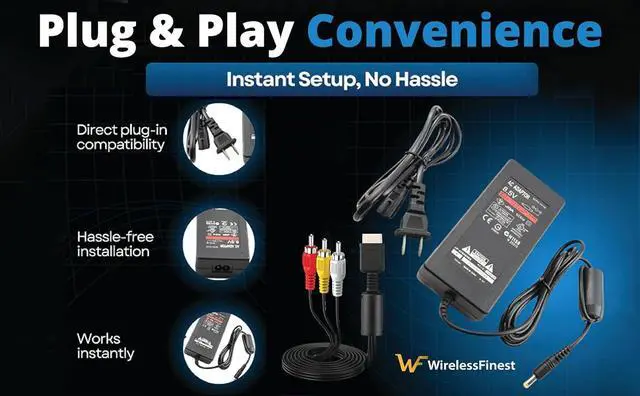 Easy to Use: Simple plug-and-play function power adapter + charging cable. Also included PS1/2/3 AV cords are color-coded for easy identification Simply connect the game input jacks to the back of the game console and TV. Its designed to provide you with super clear video and sound when you play PS games.