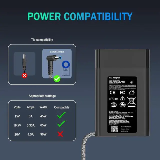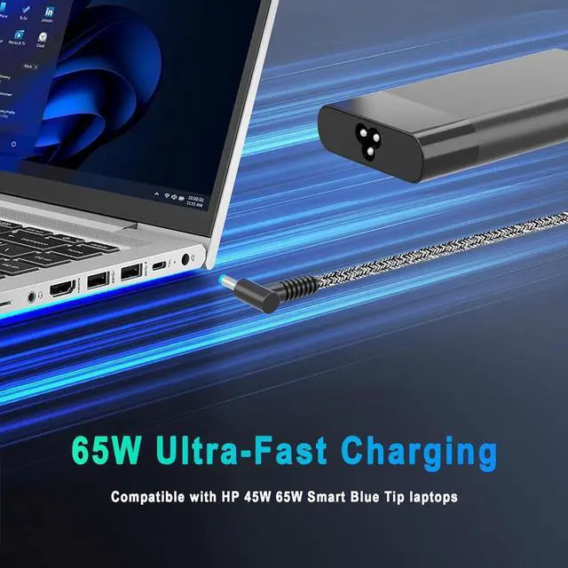 Smart Blue Tip Universal Compatibility- This 65W HP laptop charger replacement is engineered for seamless compatibility with a wide range of HP models. Features a precise blue tip connector ( 4.5 x 3.0 mm) and supports both 65W ( 19.5V 3.33A ) and 45W ( 19.5V 2.31A ) output. Always verify your original charger specifications before purchase. HP computer charger- This product has been tested to ensure compatibility with the following and many more HP Smart Blue Tip Models 65W/45W: HP Elitebook 830 / 840 G3 G4 G8 / 850 G3 G4 / HP Envy 13 15 M6 X360/Pavilion x360 11 14 13 15 17/ProBook 430 G8 / 440 G8 / 450 G3 G8 / 640 G2 G3 G4 / 650 G2 G3/ Stream 11 Pro G3 / Stream 11 Pro G4 EE / Chromebook 11 G2 G3 G4 /Spectre x360 x2 / Notebook 15 / Zbook 14u G4 15u G2 G3 G4Compatible with HP P/N- 710412-001 741727-001 709985-002 709985-004 213349-109 854054-002 AD9043-022G2 714657-001 709985-001 740015-002 854055-004 740015-003 L24008-001 L25296-001 L25296-002 SK90195333 SK90A195231 hp power adapterSafe and Reliable- The Leading American Consumer Product Testing Laboratory Lists This ITUGUDET Product as Meeting Their Standards for Electrical Safety and Design in The United States and Canada. Don't Buy Potentially Inferior or Dangerous Chargers That Can Harm Your Laptop or WorseWarranty & Quality Promise- As professional notebook power specialists we guarantee full compliance with top industry standards. Every charger includes a 12-month quality assurance with responsive after-sales support. Dont risk your device with inferior chargerschoose certified performance and peace of mind.