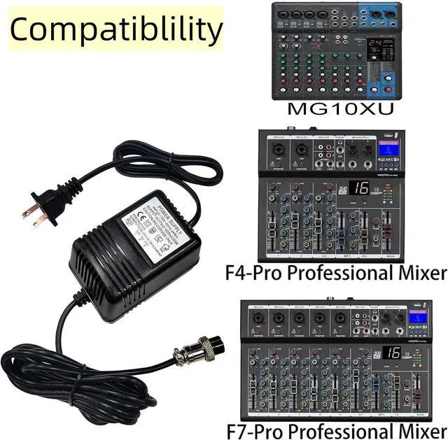 Console power adapter for Yamaha PA-10 Alesis Multimix 8USB MG16 MG166CX MG166C F4 F7 6FX MG82X MG10U MG10xuf BEHRINGER MX1804XThe power adapter for the mixing console adopts a 3-pin connector design with 1 and 3 pins at 17V and 2 pins at