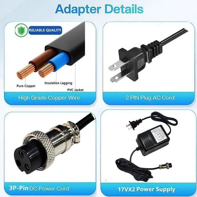 FT OUTPUT: 17V AC 600mA 20VA cable length 6.5 FTDual power supplies are used for easy splitting of circuits and to prevent humming in the main circuit. Over-current protection power protection over-voltage protection short-circuit protection with transformer design provide more stable voltage for your mixer enjoy a pleasant mixing processServiceWe are committed to providing excellent customer service and your peace of mind is our top priority. If you have any questions about this product please feel free to contact us via 's messaging system or the Q&A section. We will resolve your inquiry within 24 hours. Your satisfaction is the goal of our companya