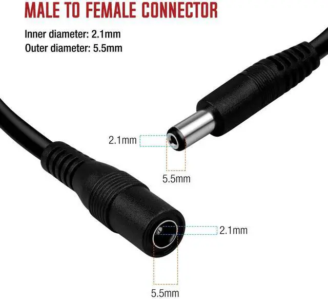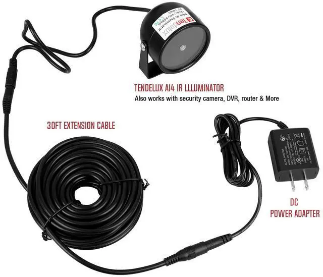 UPGRATED MATERIALS - Tendelux's 30ft DC power extension cable is made of 17/ 0.15 AS*2 premium copper wires at 22AWG featuring lower resistivity and much better electrical conductivitySTAY POWERFUL CONTINUOUSLY - This is a 30ft power extension cord for 5-24 volt DC/AC equipment with 2.1 mm power jack long enough to give you quite a bit of leeway if your device's ideal installation spot isn't close to an power outletWIDE COMPABILITY - Along with CCTV security camera / IP camera this can also be used with LED light strip IR illuminator LED signage monitors printers sensors DVR external hard drives audio mixing and recording equipment or anything that requires DC/AC input and accept 2.1 mm x 5.5 mm plugWARM