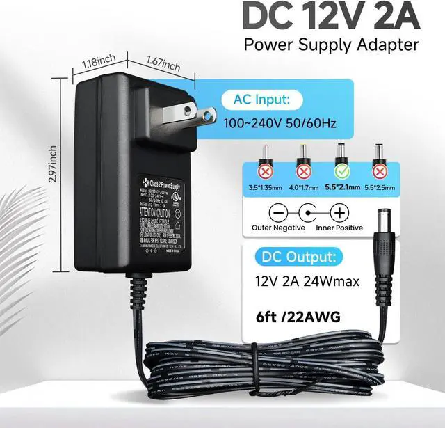 Connector Size: 5.5 mm x 2.1 mm.