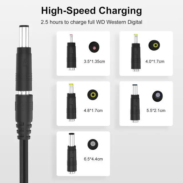 DC Jack Dimensions: 5.5 * 2.5 ( 5.5 * 2.1 compatible) 6.5 * 4.4 3.5 * 1.35 4.8 * 1.7 4.0 * 1.7O nadrive 12V Power Cord Compatible for Central 2TB (STCG2000100) 3TB (STCG3000100) 4TB (STCG4000100) FreeAgent GoFlex Desk.