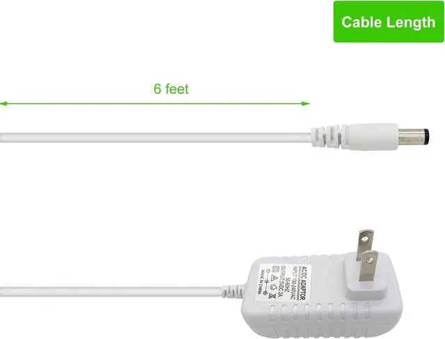 Output: 5Volts 1-2AmpsDC barrel tip round connector 6 feet ( 1.8 meters) long cableBuilt-in smart IC chip Over voltage protection Over current protection Over-Heat protectionNO LED indicator avoid night light annoying