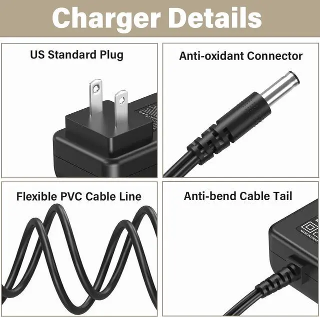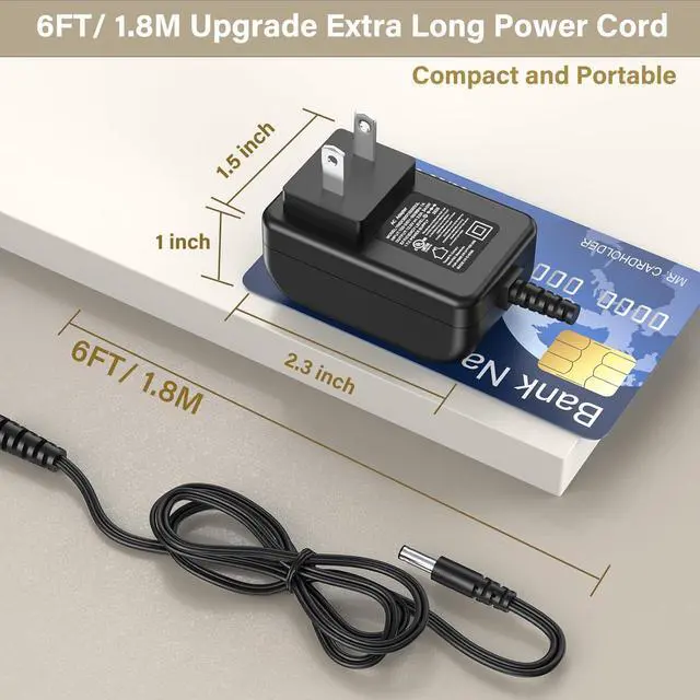 Upgrades: The replace battery charger charging cord for Audio Technica record player AT-LP60X-BW adopts the design that 2 power plugs are snap-in which is more durable and safer. The nice long wire of 6 FT/ 1.8 M power cord for audio technica record player allows your device to reach the socket enoughUL