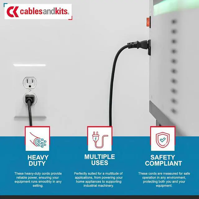 SUPERIOR POWER SUPPLY:? This 3 prong iec power cable supports 15A/125V offering reliable performance for high-power devices network setups and data centers with heavy-duty durability and strength.